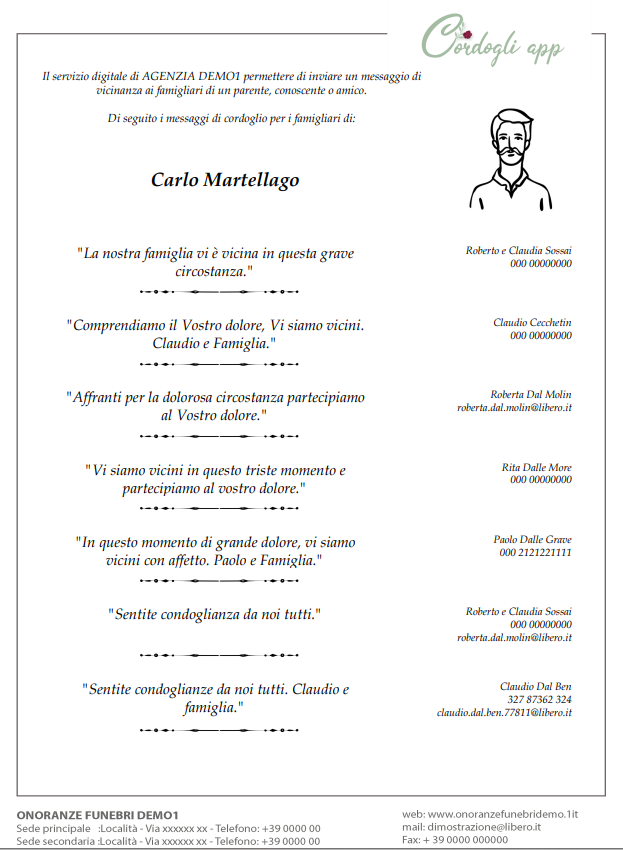 I messaggi di cordoglio arrivano automaticamente e vengono impaginati per la stampa.